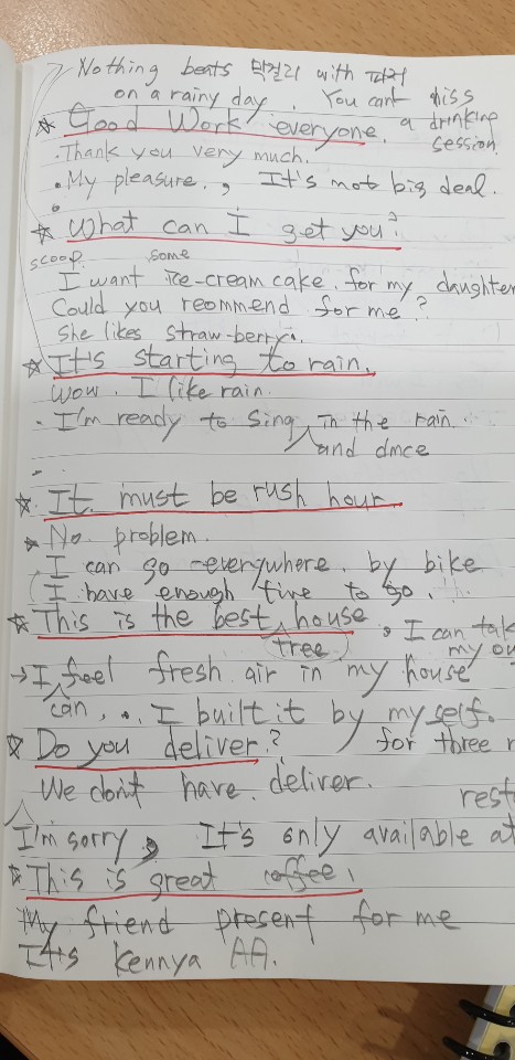 - Short Conversation 듣기 및 말하기 훈련 중심학습.