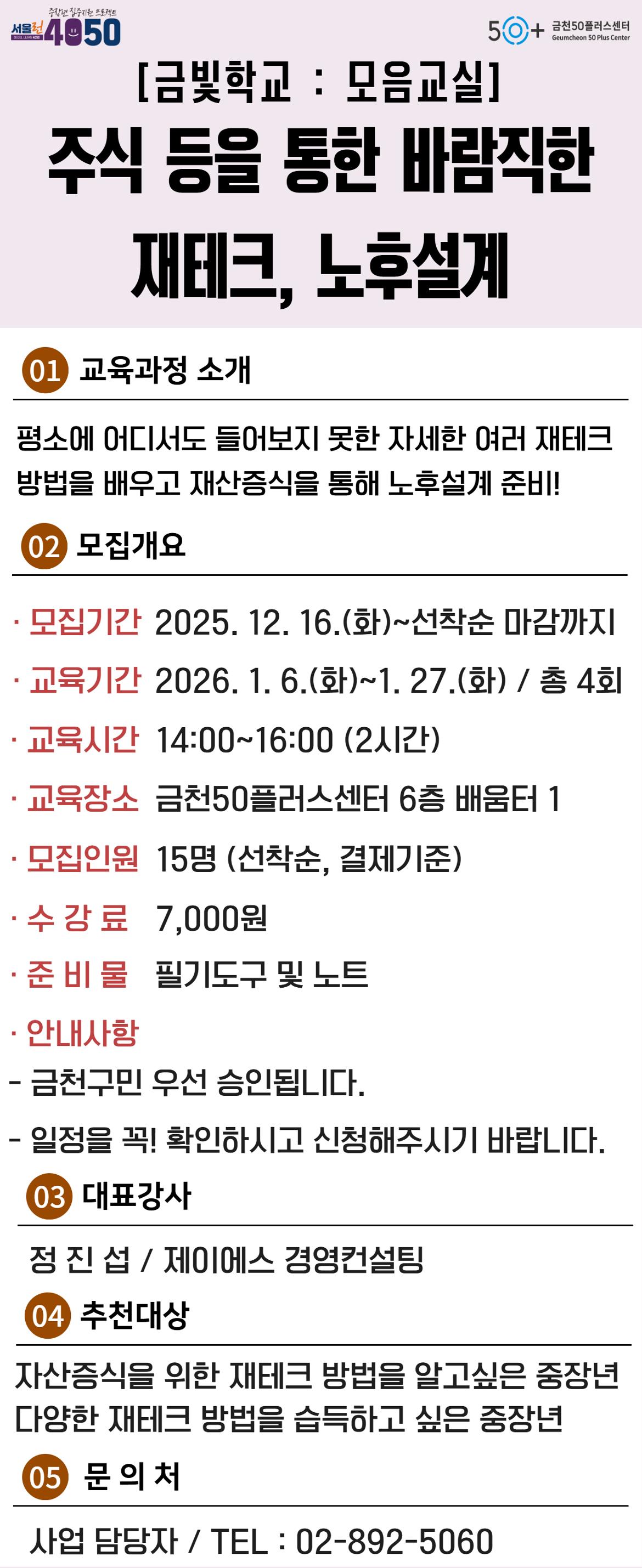 [금천][모음교실] 주식 등을 통한 바람직한 재테크, 노후설계마감 D-19