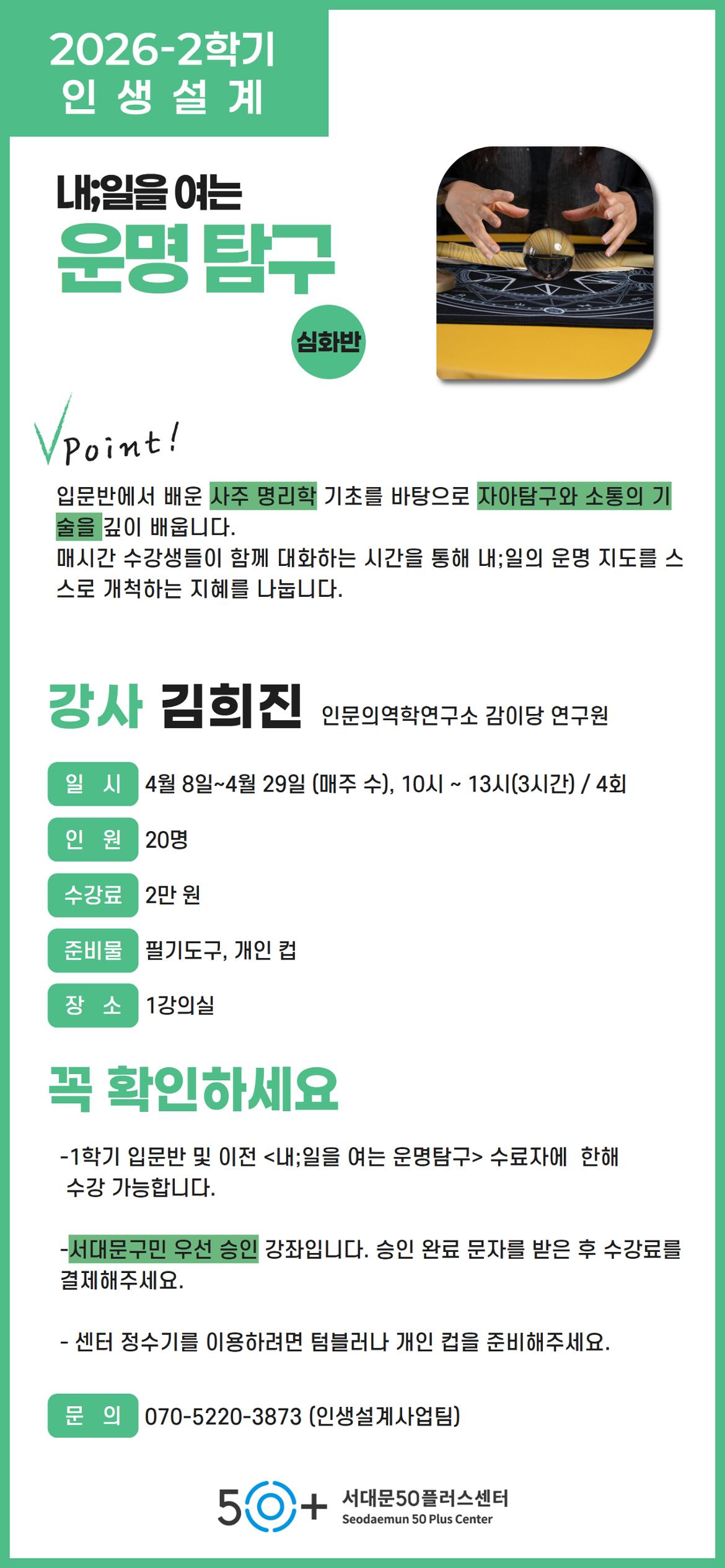 [서대문]내;일을 여는 운명탐구-심화반마감 D-32