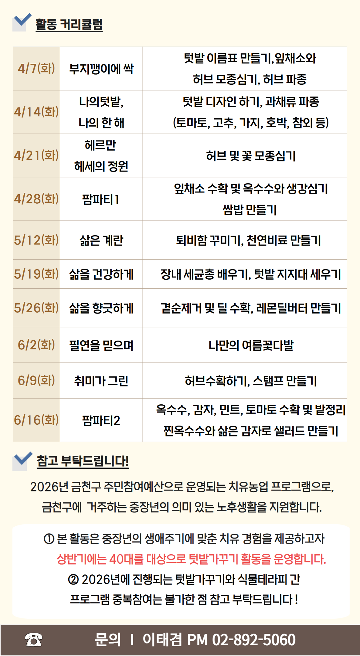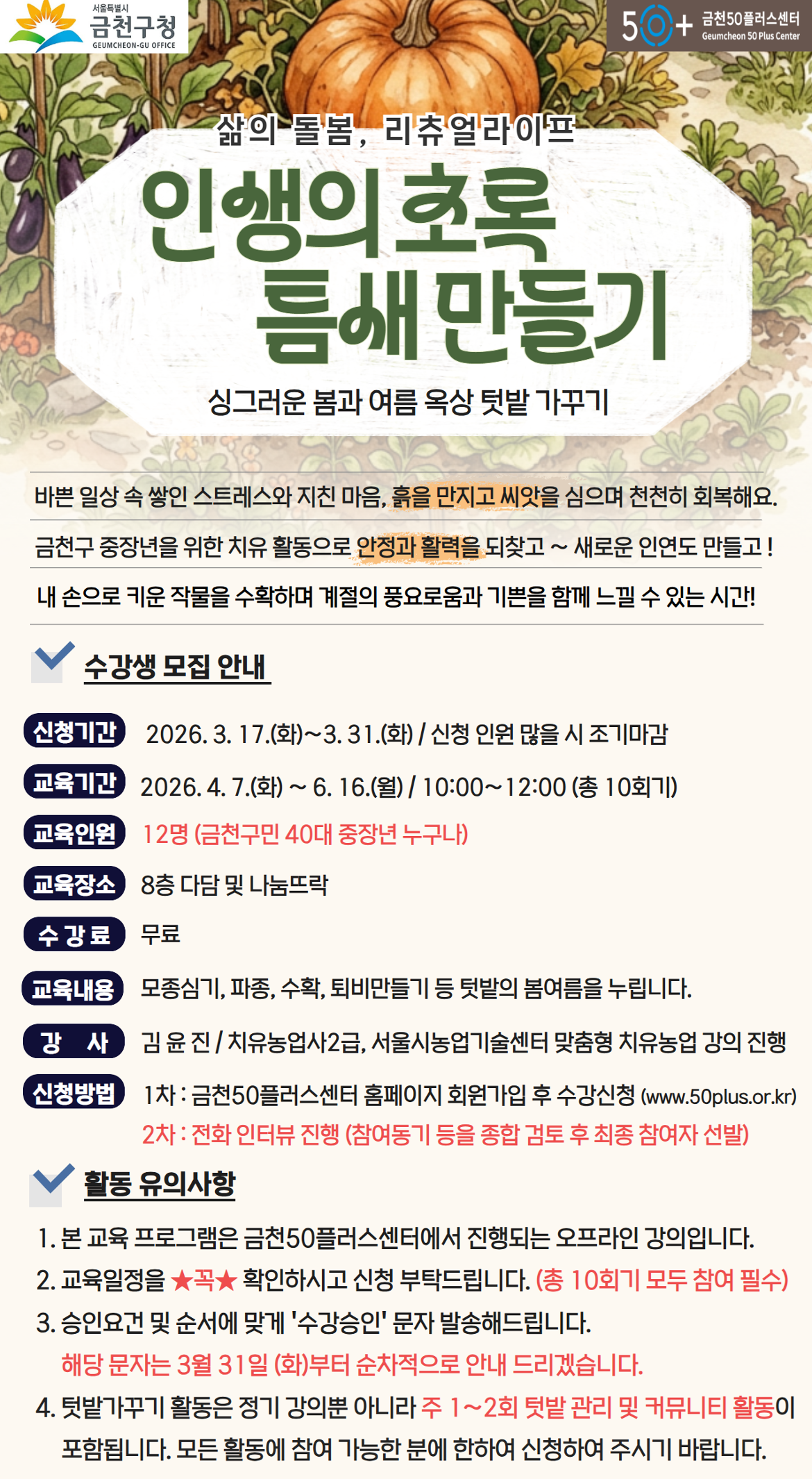 2026년 금천구 주민참여예산으로 운영되는 치유농업 프로그램으로,