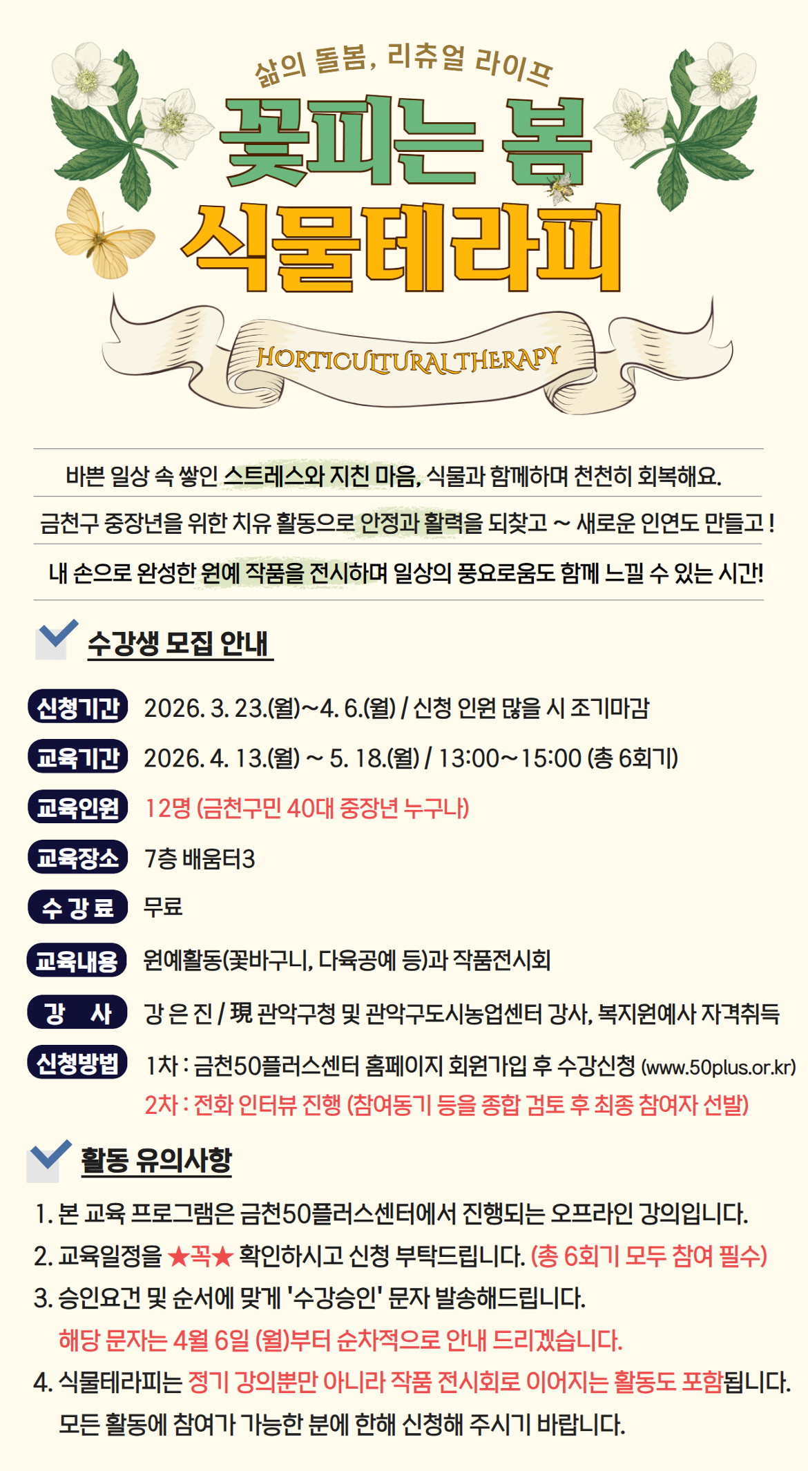 [금천][주민참여예산] 꽃피는 봄 식물테라피 마감 D-19