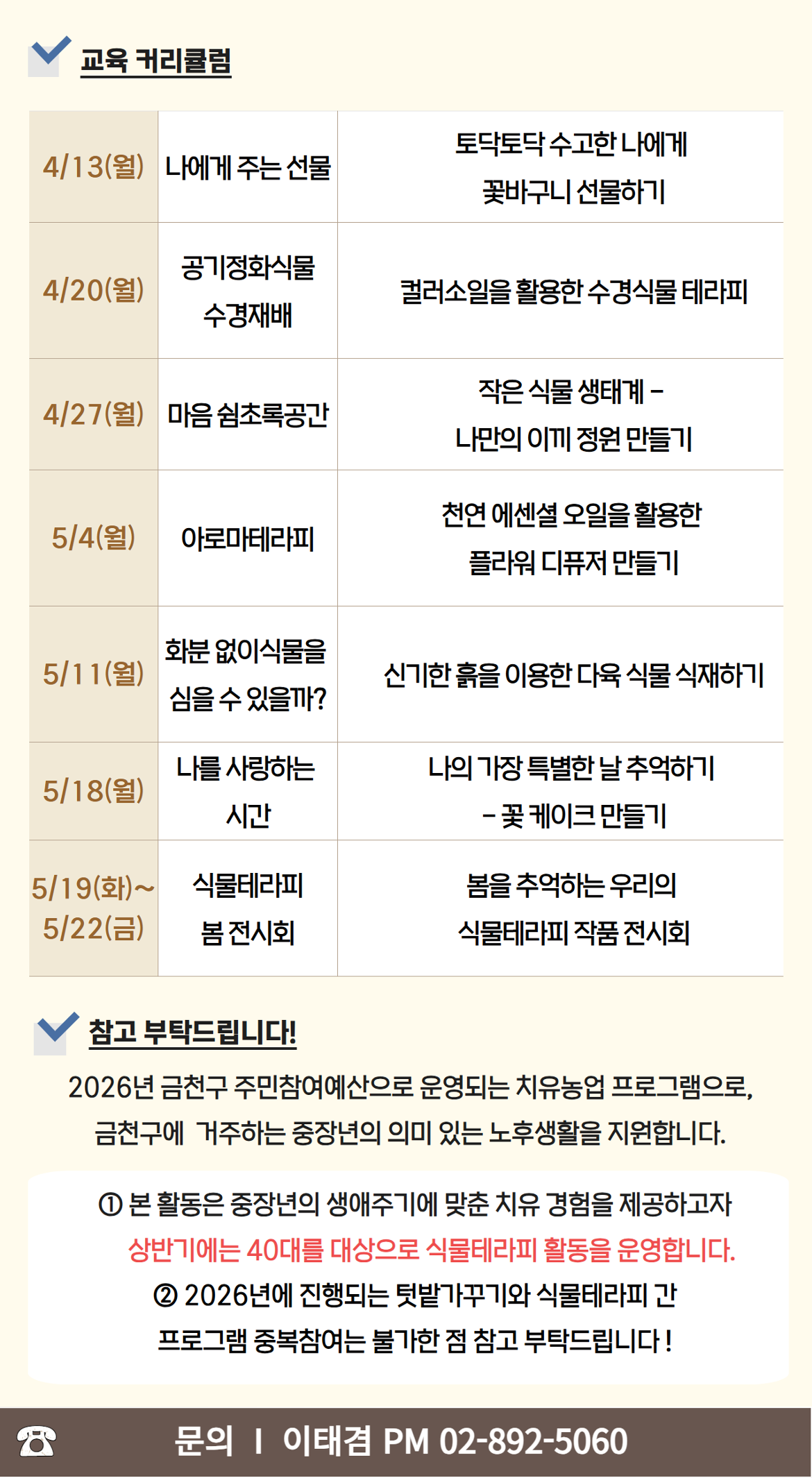 2026년 금천구 주민참여예산으로 운영되는 치유농업 프로그램으로,