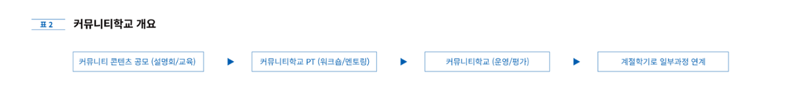 - 특이사항 : 수강생을 커뮤니티로 유입, 다자간 평가를 통해 일부과정 계절학기로 연계