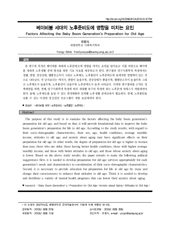 베이비붐 세대의 노후준비도에 영향을 미치는 요인