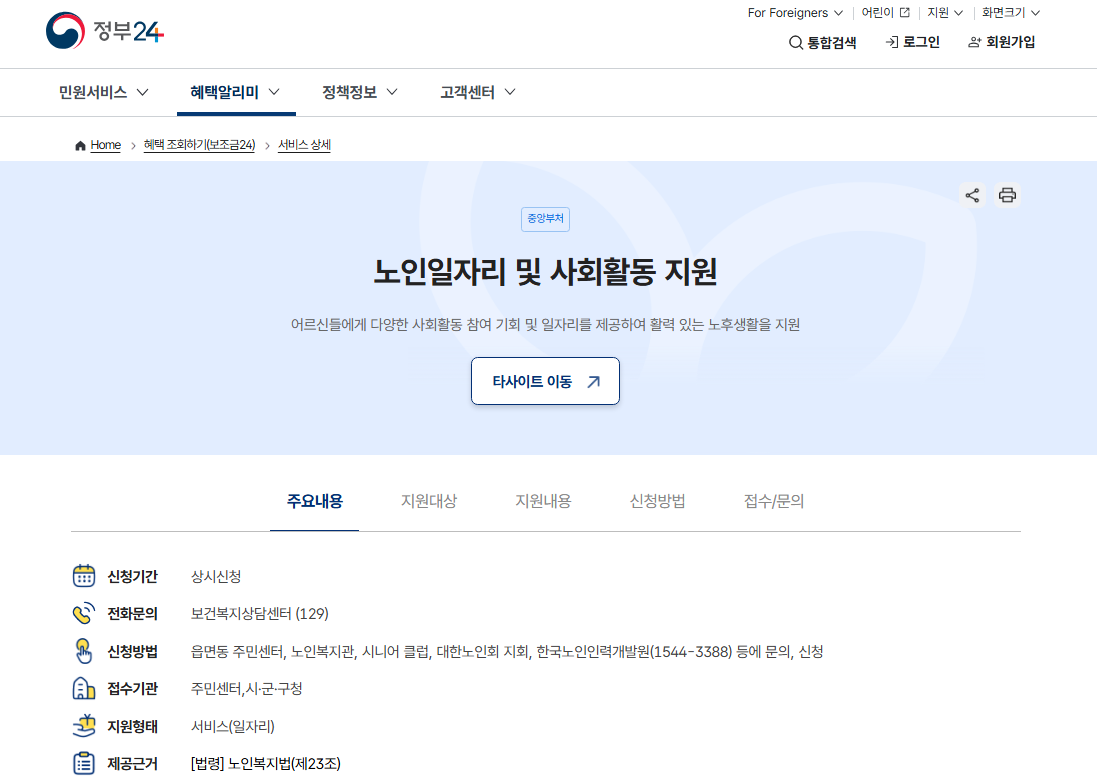 - 사회서비스형 : 65세 이상(일부 유형 60세 이상)