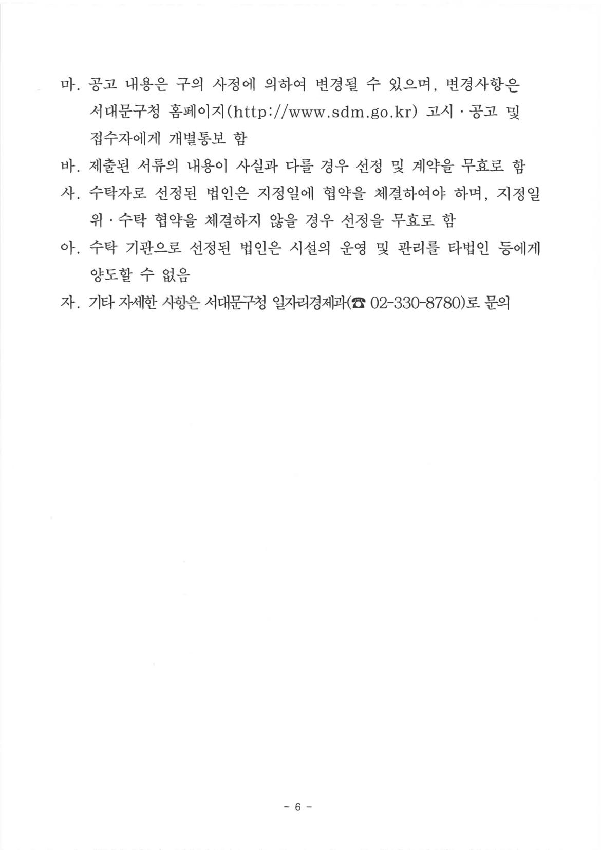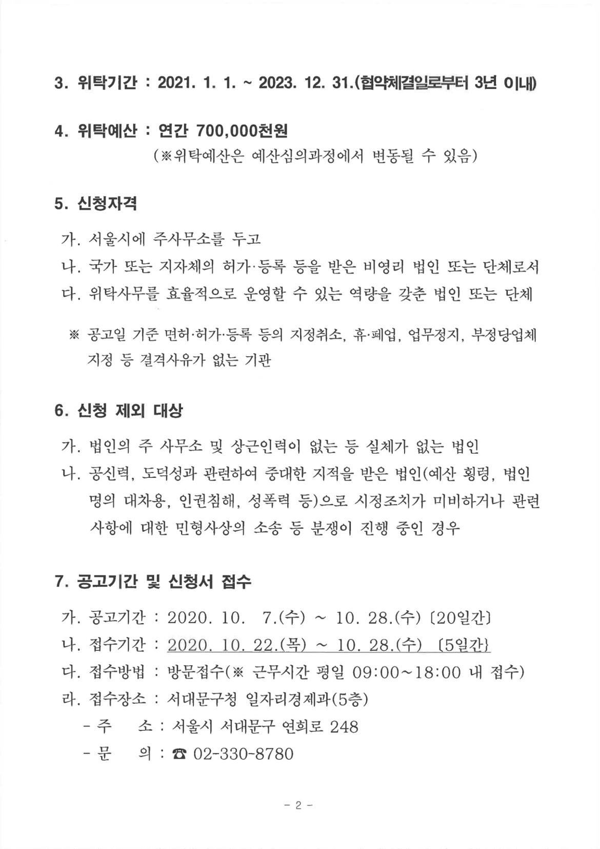 * 아래 공고에 대한 문의는 서대문구청 일자리경제과 02-330-8780으로 전화하시기 바랍니다.
