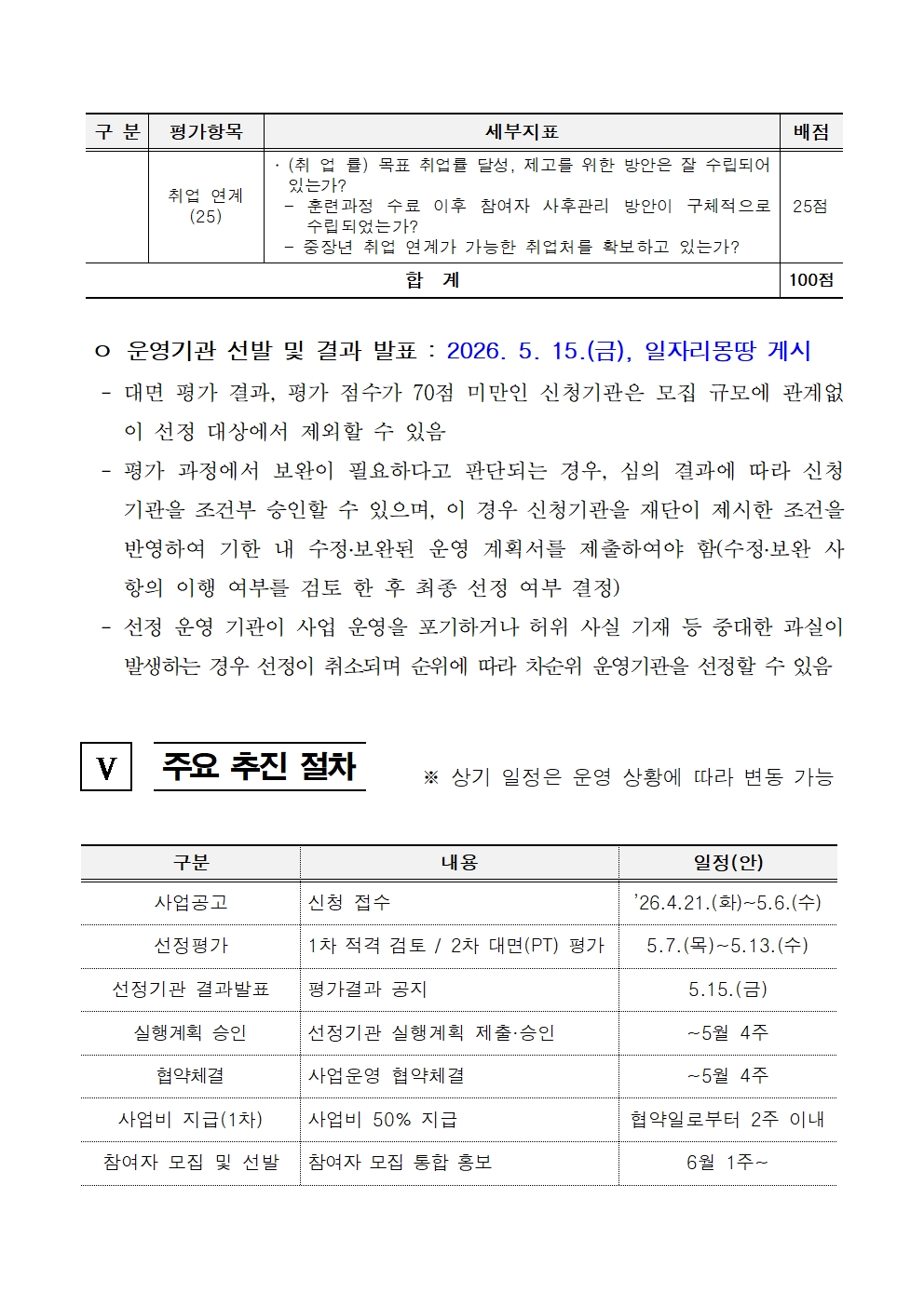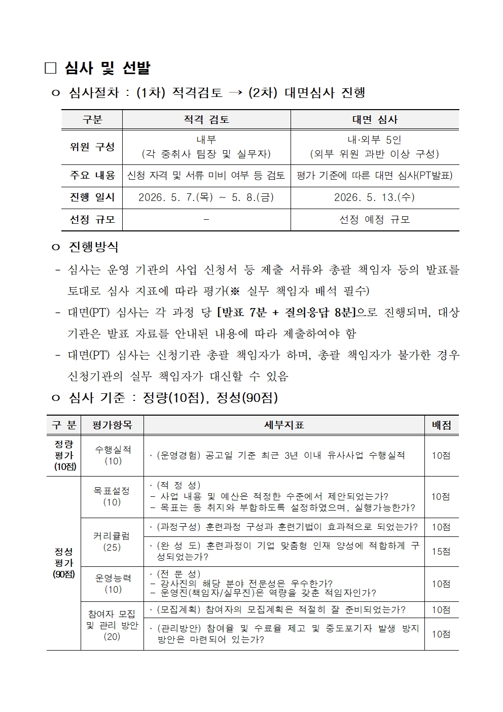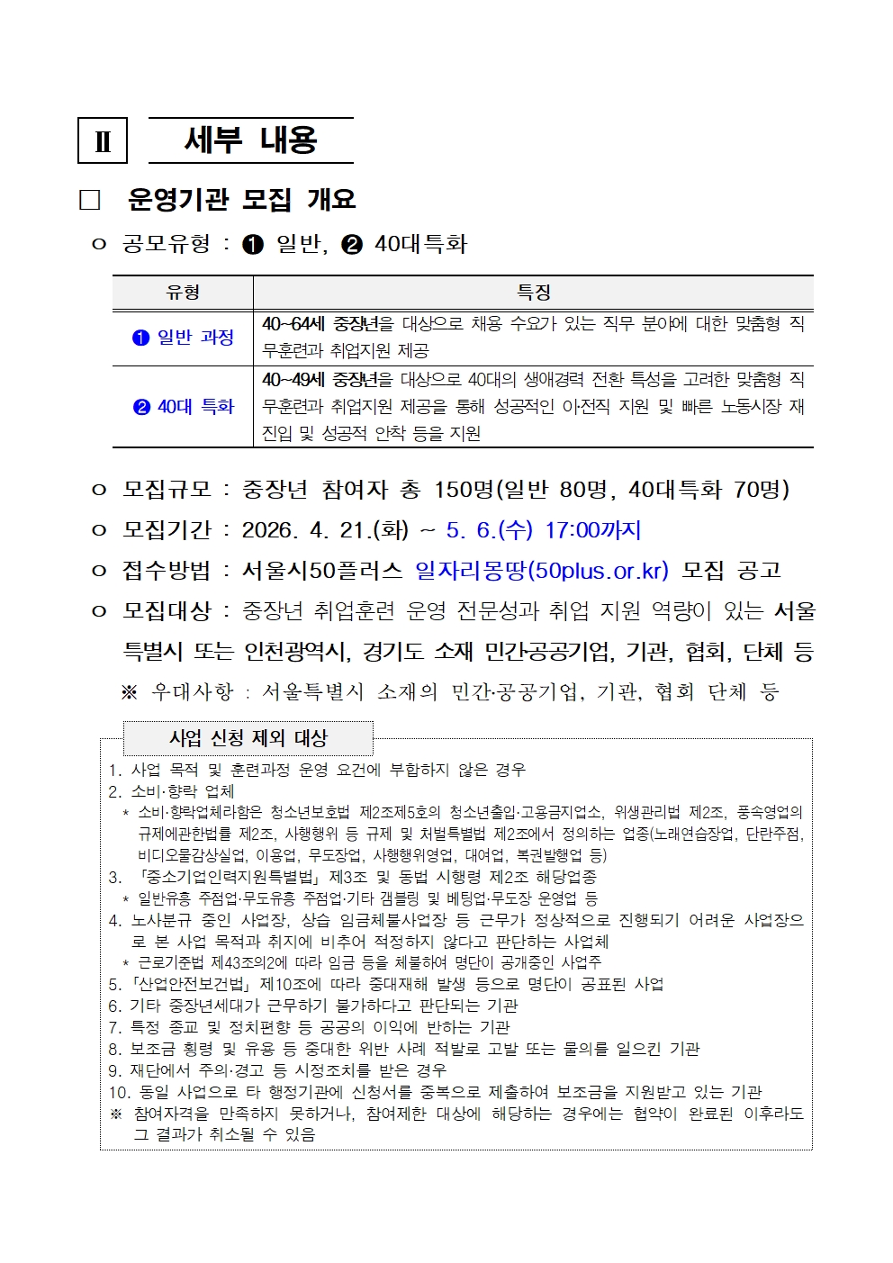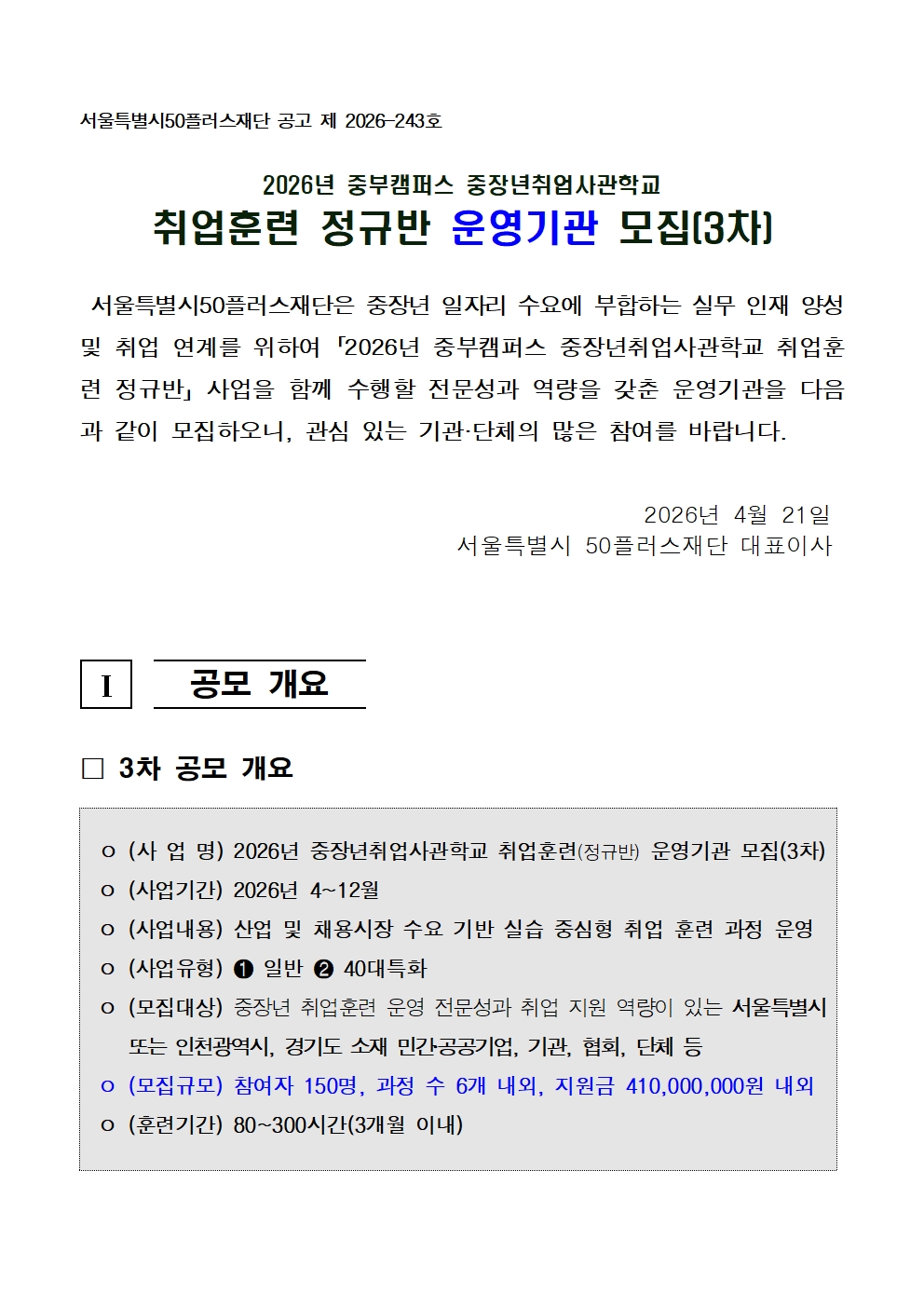 2026년 중부캠퍼스 중장년취업사관학교 취업훈련 정규반 운영기관 모집(3차) 마감 D-15