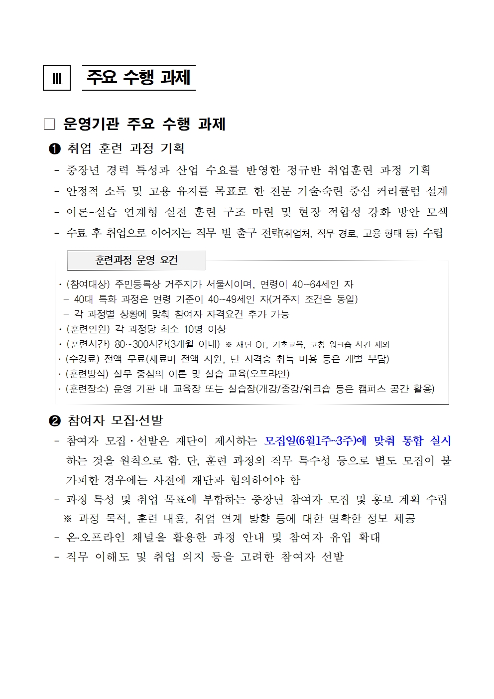 중장년 대상 직무역량 강화 집중 훈련 및 취업 연계 역량을 갖춘 기관을 모집합니다.