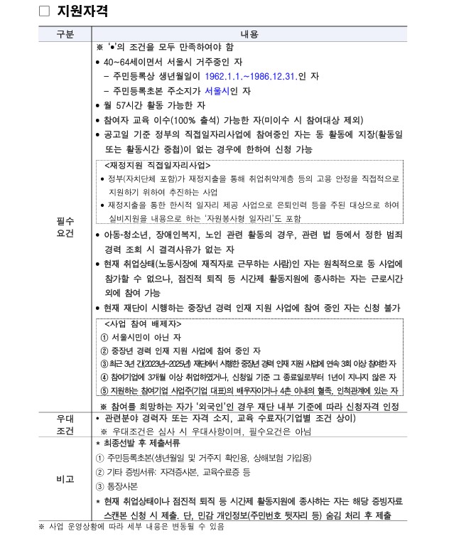 중장년 경력 인재 지원(직무체험형)