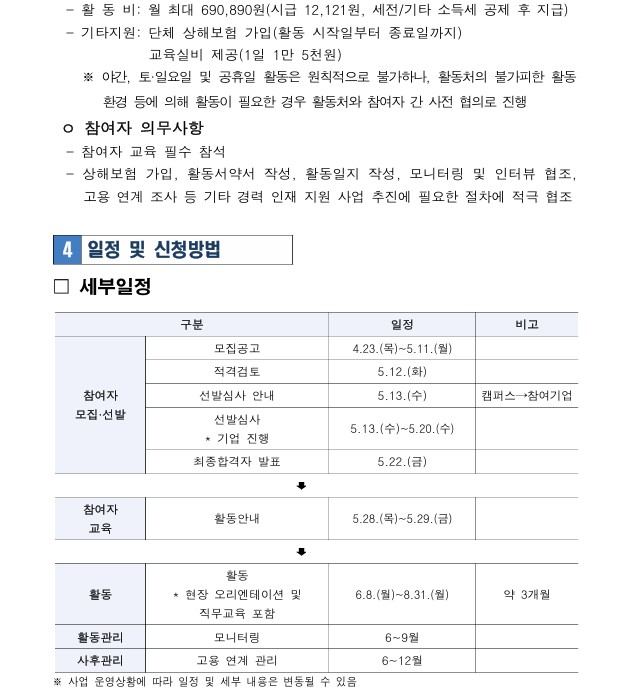 채용절차 참여자 모집→참여자 선발→참여자 교육→활동
