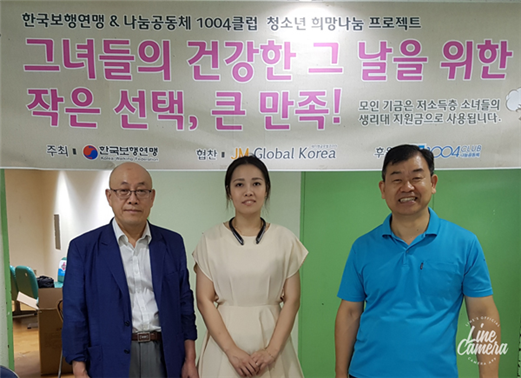 그가 추진하고 있는 '청소년 희망나눔 프로젝트'는 생리대가 없어 학교를 결석하는 여학생들을 돕는 일이다. 전국적으로 비싼 생리대 가격에 어려워하는 청소년들이 많다는 사실을 깨닫고, 그는 직접 학교 교장 및 담당선생님들과 면담을 통해 실태를 파악하기 위해 노력했다고 한다. 실제로 생리대가 없어 학교를 가지 못하는 학생들의 수가 적지 않았고, 심할 경우 상대적 박탈감으로 인해 여학생들이 쉽게 자살을 시도하는 심각한 사회적 문제라는 것을 깨달았다.
