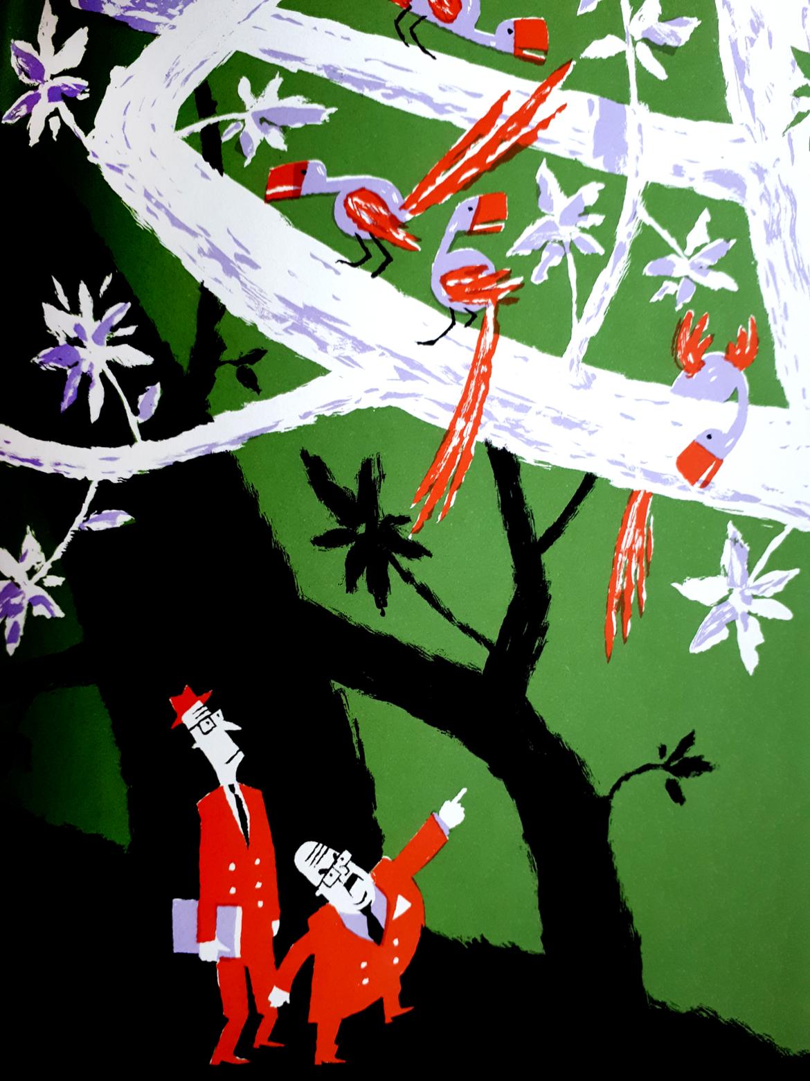 이 책은 판형이 보통책 보다 크고 길다. 커다란 나무처럼! 이 책의 그림은 내가 좋아하는 스타일이 아니지만, 단순한 듯 선명한 색감이 편안하고 몇몇 장면은 참 좋다.