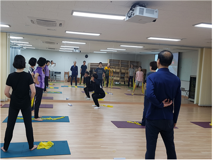 이때 박주혁 강사가 힘이 솟는 말을 하신다. “처음 수업과 비교하면 운동하는 자세와 강도가 너무 많이 좋아지셨습니다!”