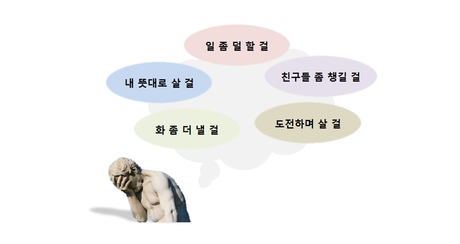 번역에 따라 조금씩 표현이 다르지만 필자가 저자의 의도를 읽으면서 나름 정리한 것이다. “내 뜻대로 살지도 못하고 일만 열심히 하면서 내 감정을 제대로 표현하지도 못했구나, 친구들도 챙기지도 못 하고 도전하지도 못하면서 다람쥐 쳇바퀴 돌 듯 살았구나”하면서 인생을 후회하는 것이다. 그것도 죽음을 코앞에 두고서 하는 후회라면 우리들이 귀담아들어야 하지 않을까?