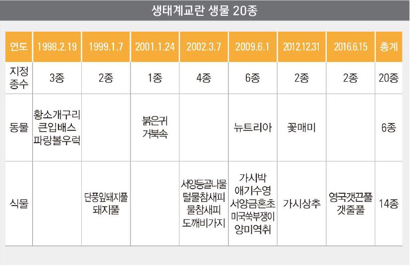 우리나라에서는 이러한 외래생물들을 ‘생태계교란생물’로 지정하여 철저히 관리하고 있는데