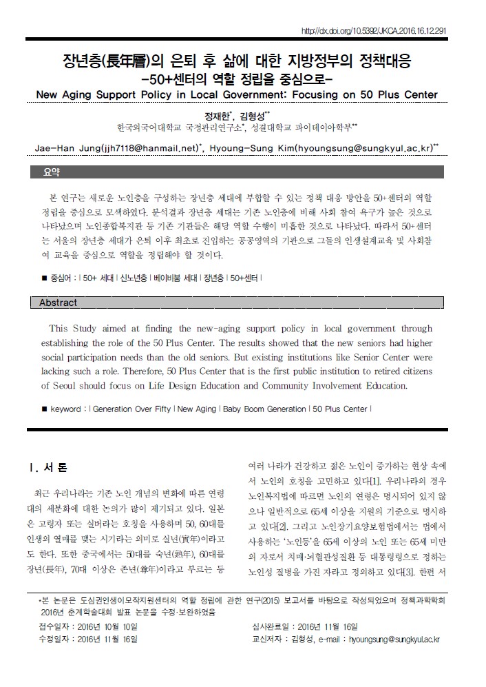 장년층(長年層)의 은퇴 후 삶에 대한 지방정부의 정책대응
