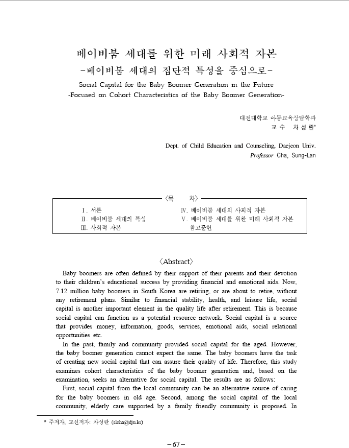 베이비붐 세대를 위한 미래 사회적 자본: