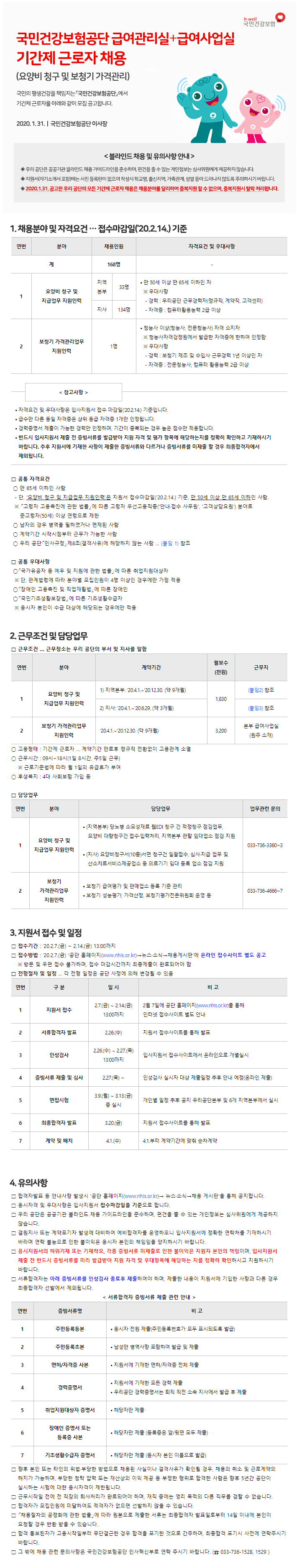 [국민건강보험공단] 급여관리실+급여사업실 기간제 근로자 채용(~2/14)