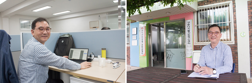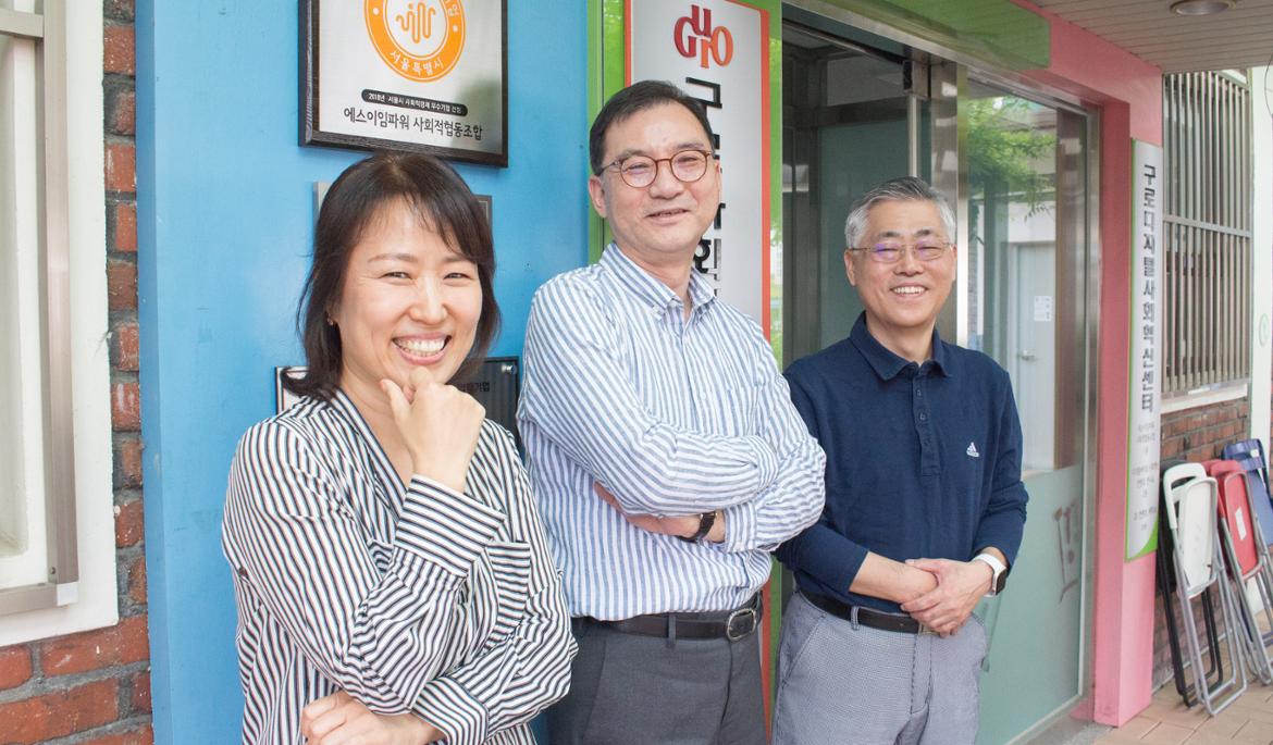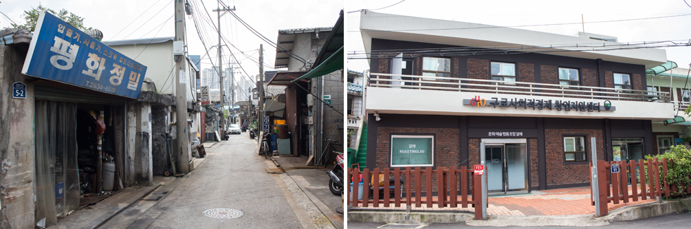 지하철 2호선 도림천역을 나와 좁은 골목을 따라 걷는다. 정밀 공업사, 화학사, 석유 판매상, 공업용 금속과 기계를 취급하는 상점들, 허름한 밥집이 오밀조밀 몰려 있다. 낮은 지붕들 아래로 십분 남짓 걸었다. 검붉은 벽돌로 지어진 2층 건물이 눈에 들어온다. 나무 울타리가 둘러싼 작은 마당으로 들어섰다. ‘구로구 사회적경제 창업지원센터’ 간판이 보인다.