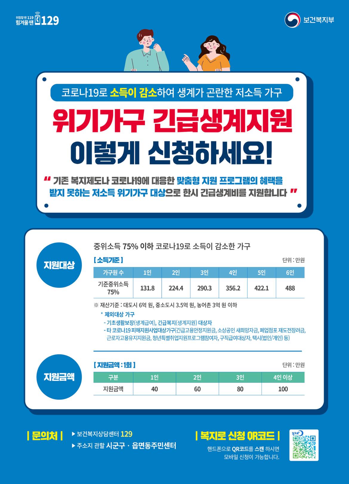 [보건복지부] 위기가구 긴급생계지원 신청 안내(~11.6)