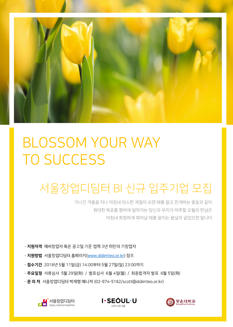 서울동북부의 창업거점 서울창업디딤터에서 5월 27일(일) 11시까지 신규 입주기업을 모집합니다.