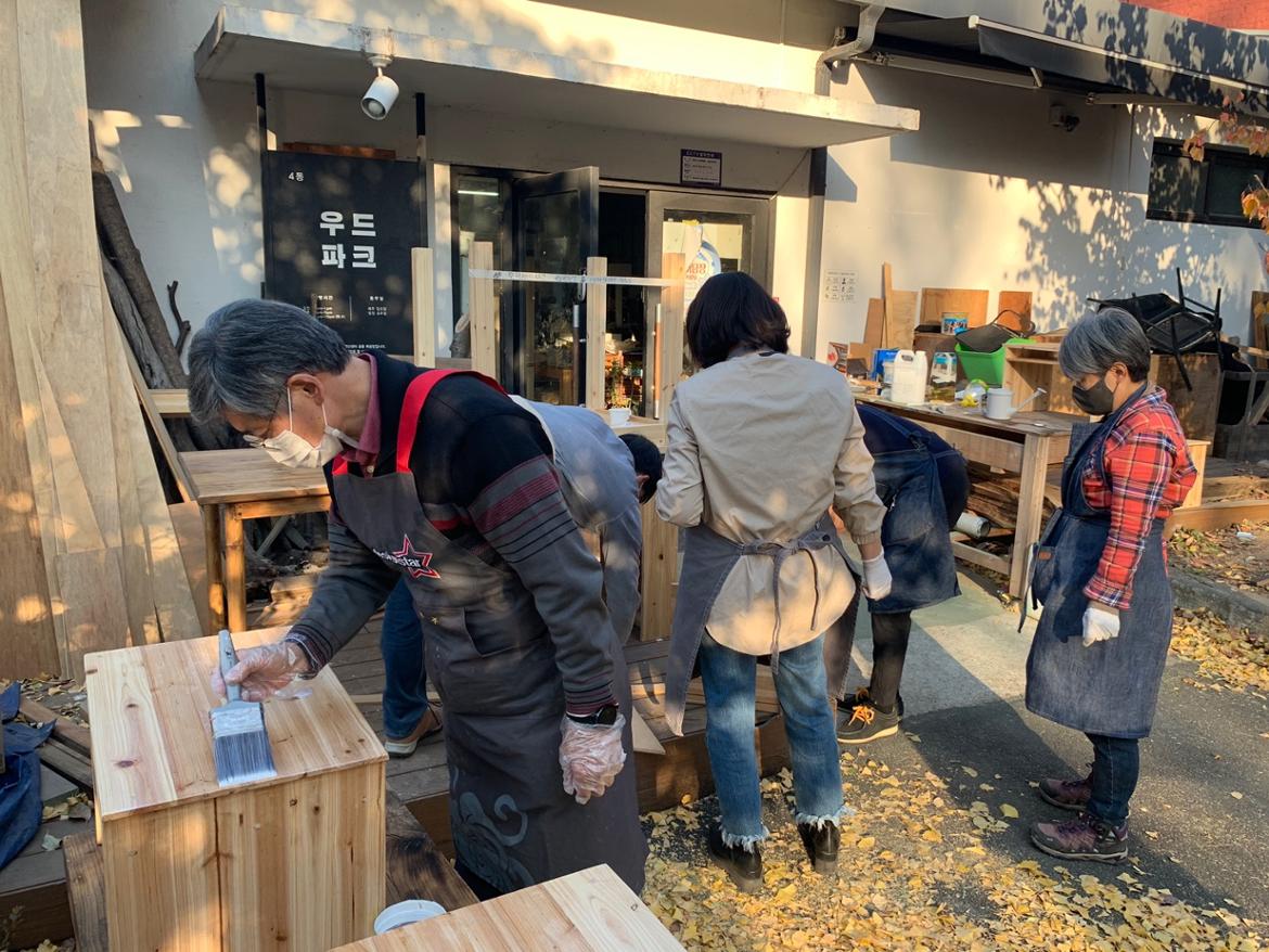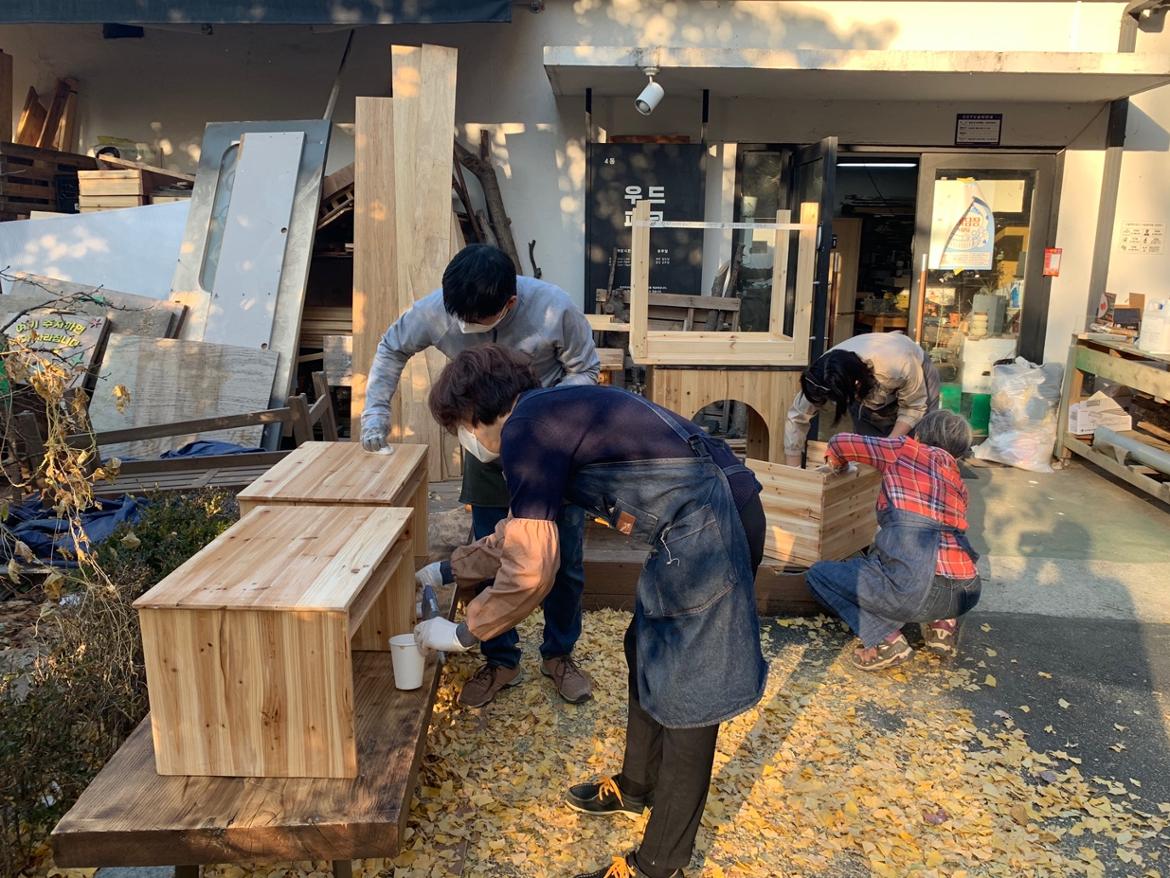 - 커뮤니티 정기모임 및 원목 좌탁테이블 조립/도색 및 마감작업